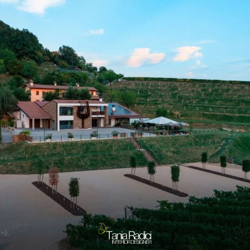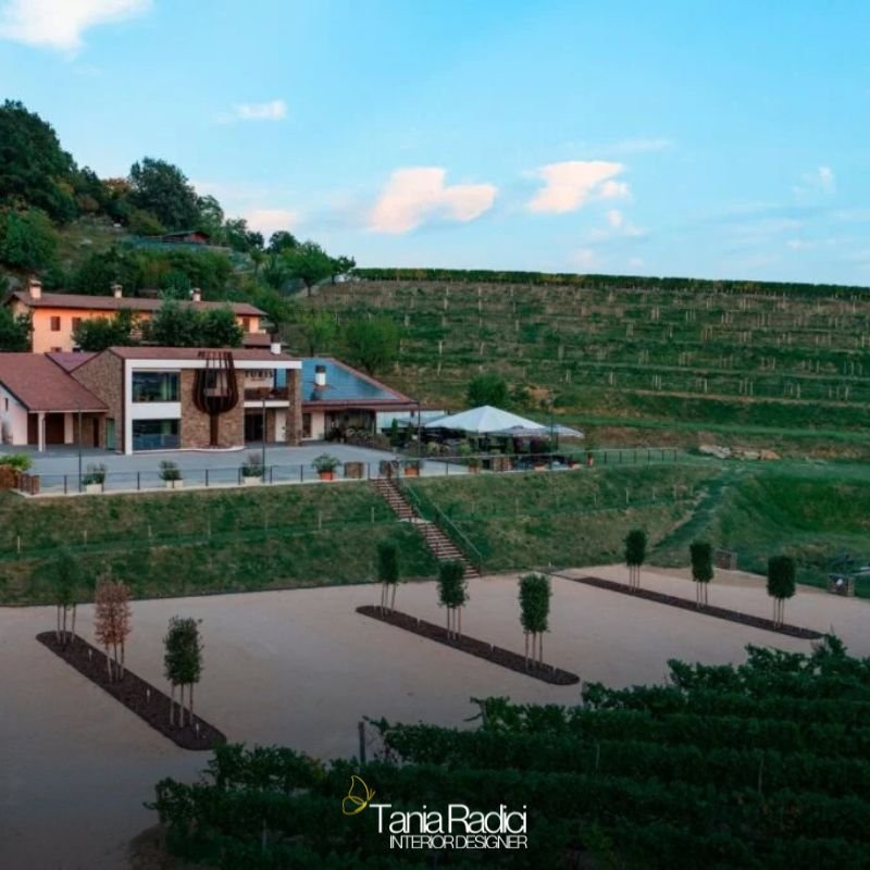 L’azienda sorge in una zona collinare circondata dai propri vigneti. Sin dall’inizio, ho voluto che il progetto nascesse dal territorio: nei colori, nei materiali e nello spirito. Nessun riferimento a stili di moda, ma una linea progettuale autonoma, capace di interpretare l’anima dell’azienda: radicata nella tradizione, ma proiettata al futuro.