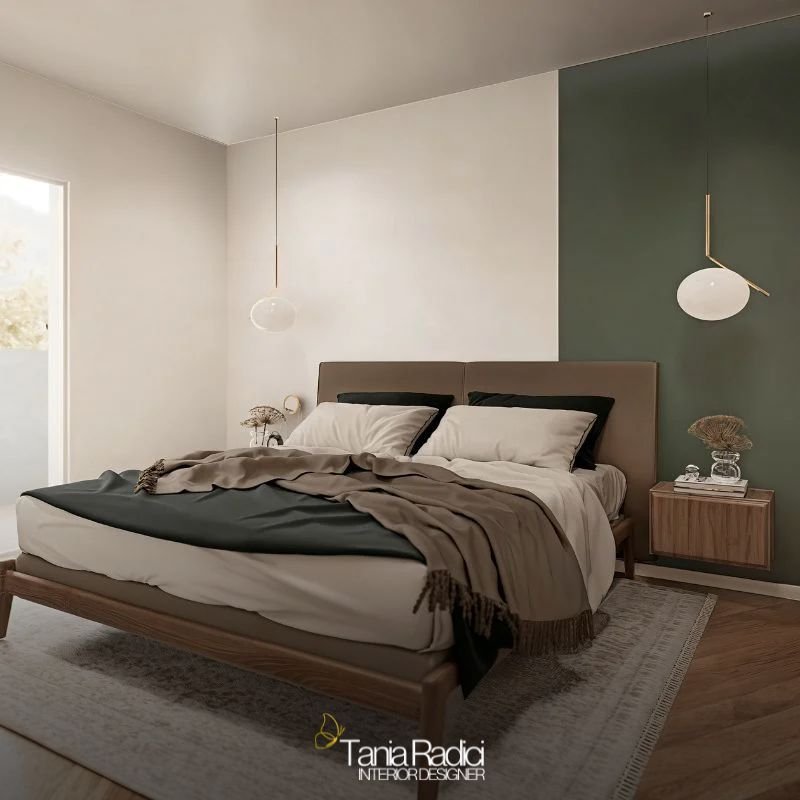 Durante il primo incontro ho colto il loro forte legame con la natura e la montagna. Da qui la scelta di una palette naturale: bianco, sabbia chiaro, noce canaletto e un verde scuro che ritorna in diversi ambienti.