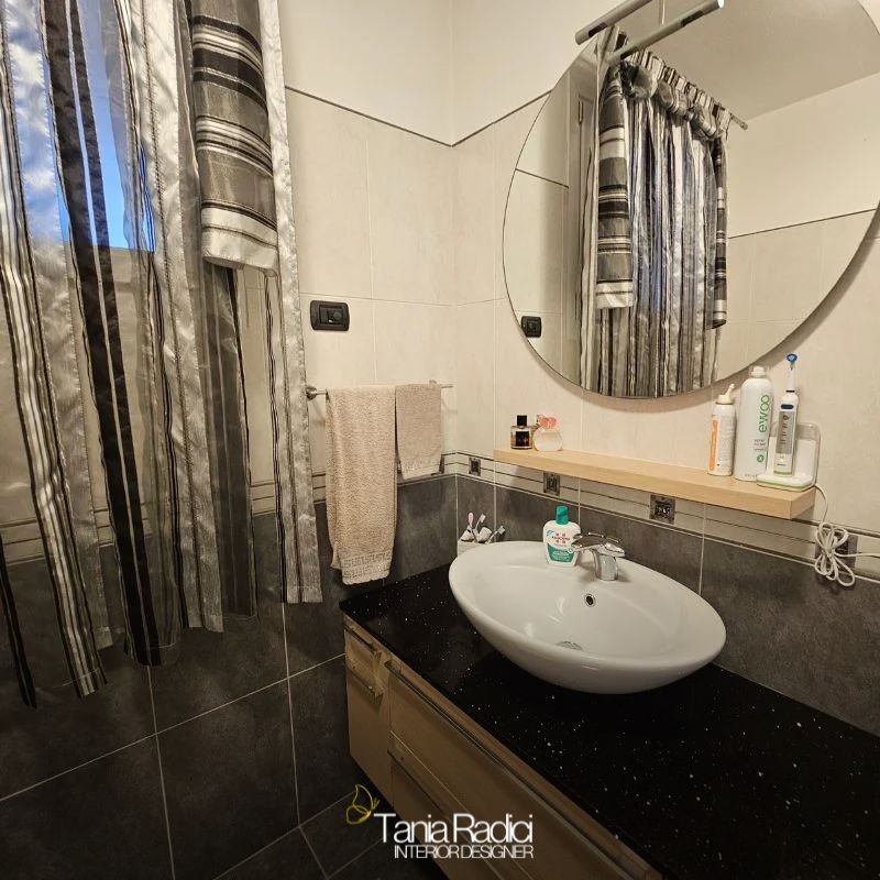 Anche il bagno al piano terra è stato oggetto di un’importante trasformazione. Ho scelto materiali sofisticati come il marmo nero e il marmo beige, in equilibrio tra classicità ed eleganza, perfetti per dare un senso di esclusività e stile a uno spazio spesso trascurato.